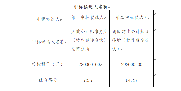 根據(jù)相關法律法規(guī)及比選文件的規(guī)定,長沙市公路橋梁建設有限責任公司海南辦事處經營情況專項審計服務項目(第二次)評標工作已經結束,本項目評標辦法采用的“綜合評估法”。評標委員會推薦了3名中標候選人,已于2022年11月28日公示,公示期滿后,因排名第一的中標候選人放棄中標,比選人按照評標委員會提出的中標候選人名單排序依次確定其他中標候選人為中標人,現(xiàn)將相關信息重新予以公示: