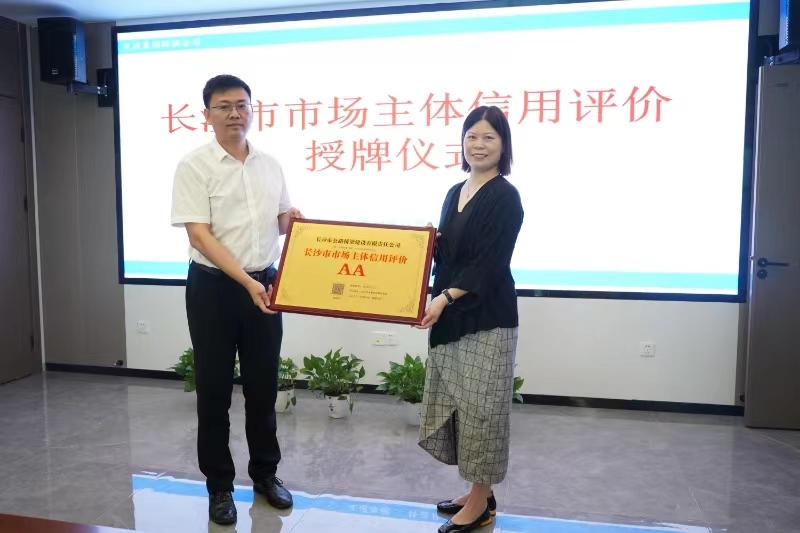 公司首次獲評(píng)“長(zhǎng)沙市市場(chǎng)主體信用評(píng)價(jià)AA”榮譽(yù)